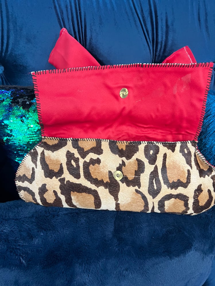 Make a statement without saying a word. This fierce-yet-feminine clutch pairs a bold leopard print with an oversized, show-stopping red bow for the ultimate mix of wild and glamorous. The structured silhouette is perfectly sized to hold your essentials — from lipstick to your phone — while the magnetic snap closure keeps everything secure.