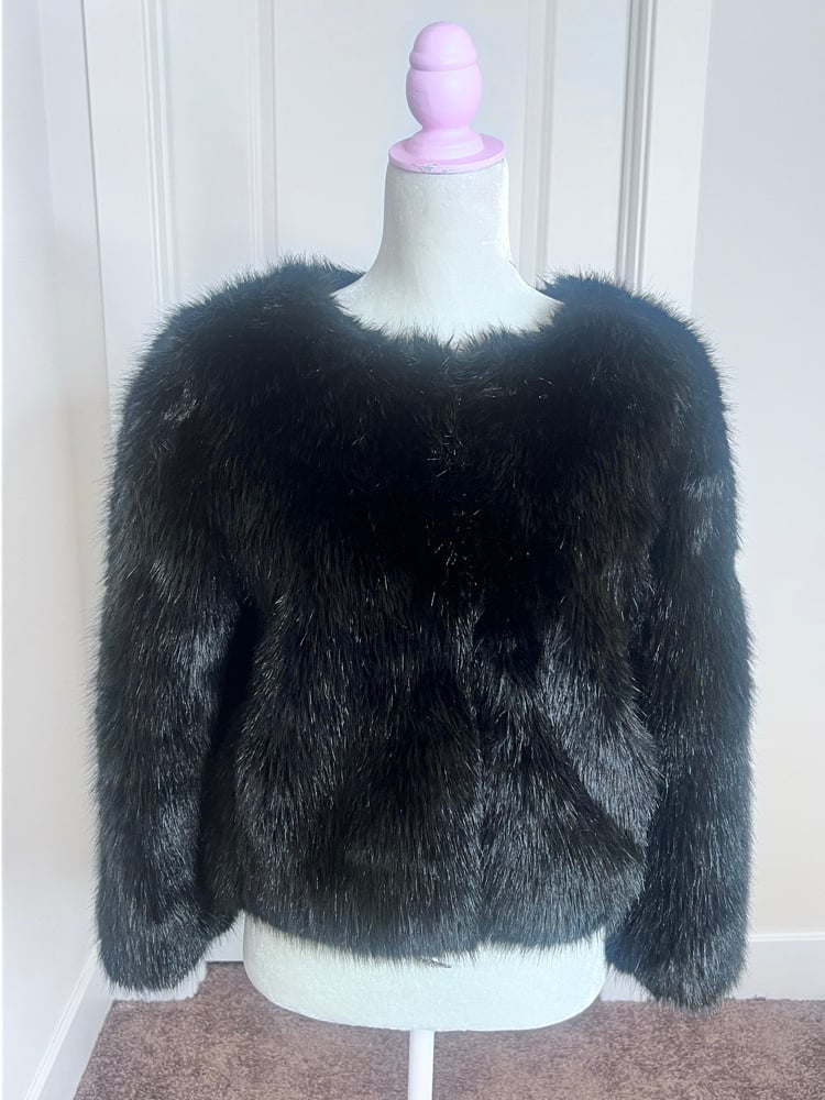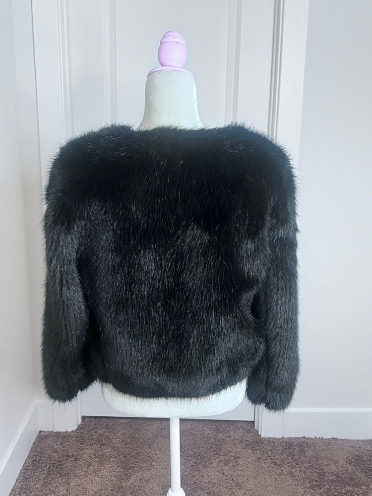 Turn heads in this stunning luxury cropped faux fur jacket, designed to bring effortless glamour and sophistication to your wardrobe.